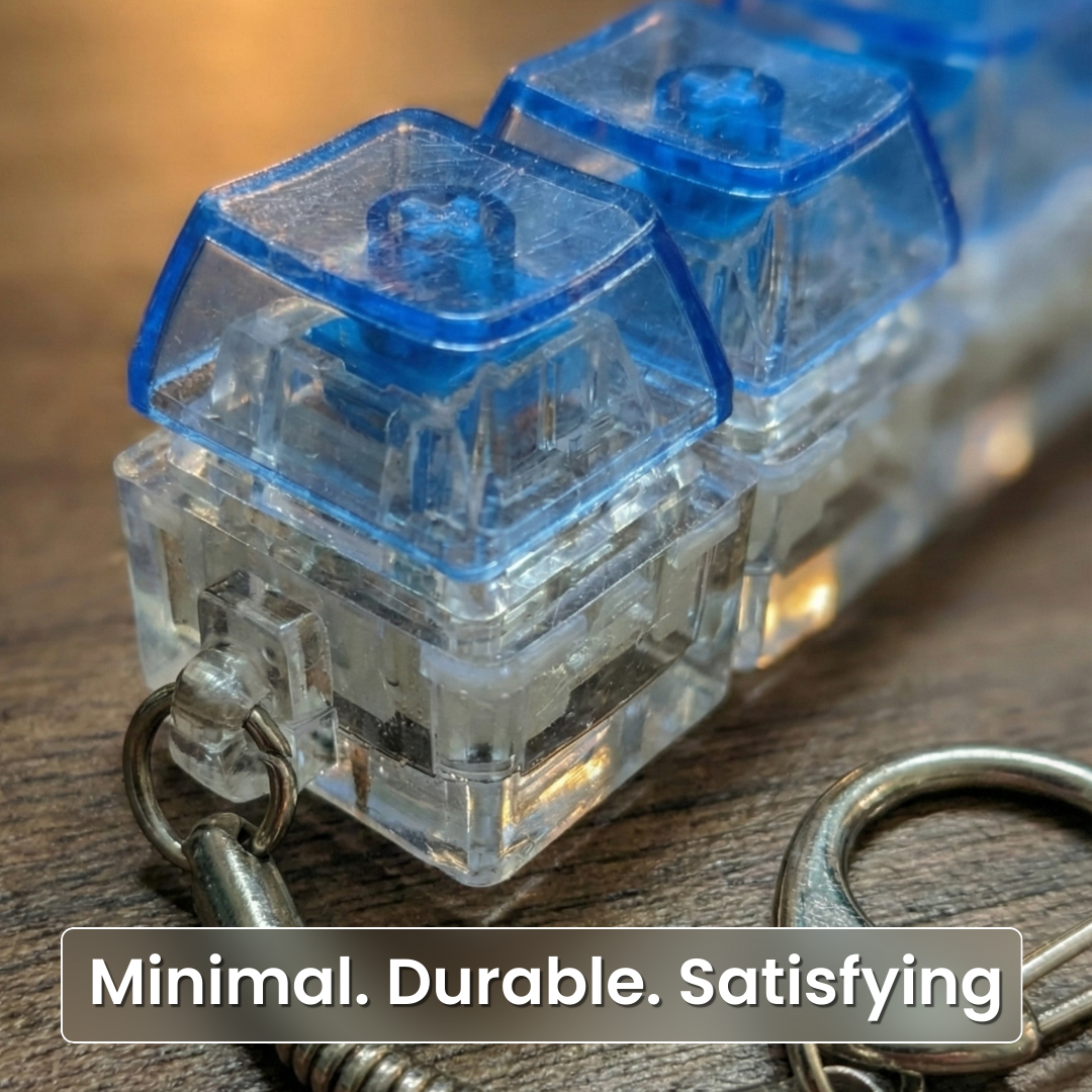 A compact, tough fidget key designed for daily stress relief. Clean design, strong build, and a click that feels just right.